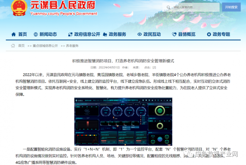 近日,元謀縣人民政府官網(wǎng)發(fā)布了力安科技安消云平臺入駐元謀縣,為元馬鎮(zhèn)敬老院、黃瓜園鎮(zhèn)敬老院、老城鄉(xiāng)敬老院、羊街鎮(zhèn)敬老院等4個公辦養(yǎng)老機構(gòu)提供立體式安全保障的相關(guān)信息。