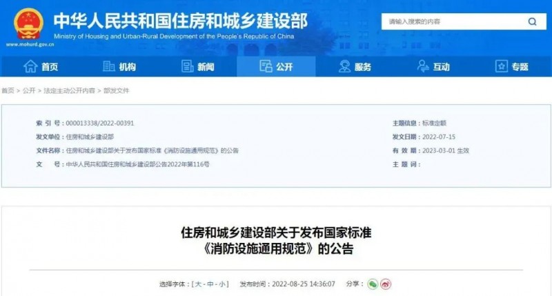 近日,住建部發(fā)布一批規(guī)范,其中批準(zhǔn)《消防設(shè)施通用規(guī)范》為國(guó)家標(biāo)準(zhǔn),編號(hào)為GB 55036-2023,自2023年3月1日起實(shí)施。本規(guī)范為強(qiáng)制性工程建設(shè)規(guī)范,全部條文必須嚴(yán)格執(zhí)行。現(xiàn)行工程建設(shè)標(biāo)準(zhǔn)中有關(guān)規(guī)定與本規(guī)范不一致的,以本規(guī)范的規(guī)定為準(zhǔn)。