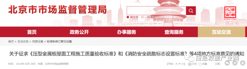 據(jù)北京市市場監(jiān)督管理局網(wǎng)站消息,北京某些場所將增設(shè)消防安全疏散標(biāo)志,《消防安全疏散標(biāo)志設(shè)置標(biāo)準(zhǔn)》面向社會公開征求意見,并于2022年3月30日截止。