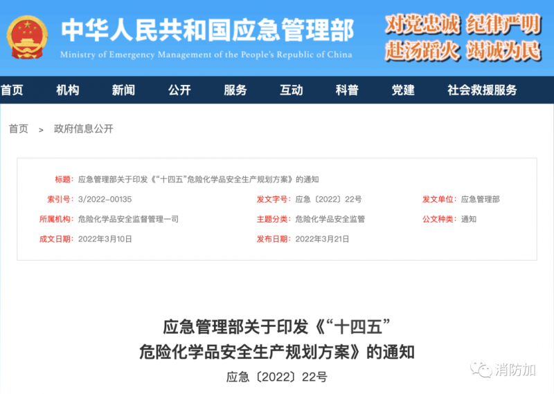 應(yīng)急管理部印發(fā)《"十四五"危險(xiǎn)化學(xué)品安全生產(chǎn)規(guī)劃方案》,推動(dòng)消防資源的共建共享和應(yīng)急裝備能力提升